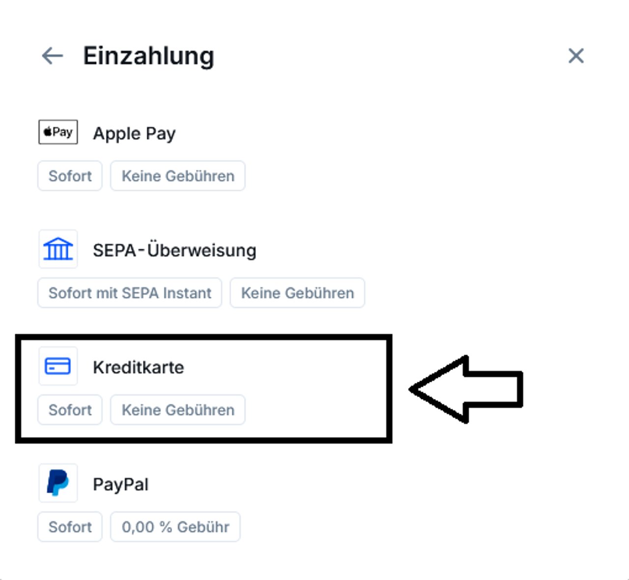 Der Kauf von Bitcoin mit Kreditkarte kann im Vergleich zu anderen Zahlungsmethoden wie Banküberweisungen mit höheren Gebühren verbunden sein. Zu den Einzahlungsgebühren addieren sich noch die eigentlichen Handelsgebühren. Falls du also direkt Bitcoin mit der Kreditkarte kaufst, entfällt die Einzahlungsgebühr sowie der Spread auf den Bitcoin Kurs.