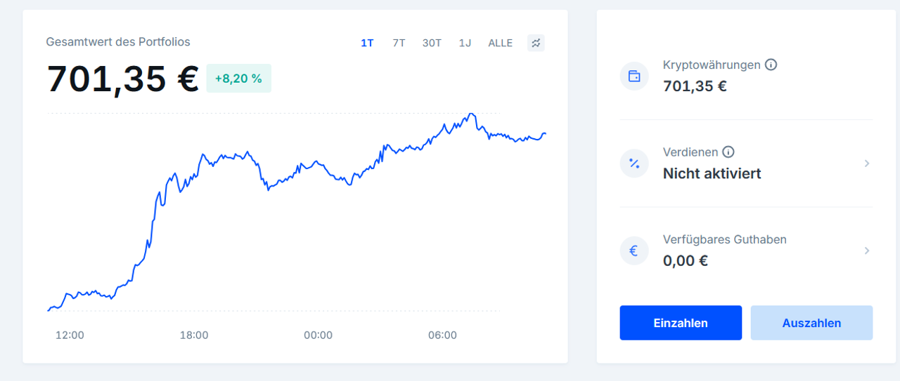 | Coinbase | 1,49 % + 0,5 % | Debit- oder Kreditkarte, PayPal, Klarna, Banküberweisung | 10,00 € |
