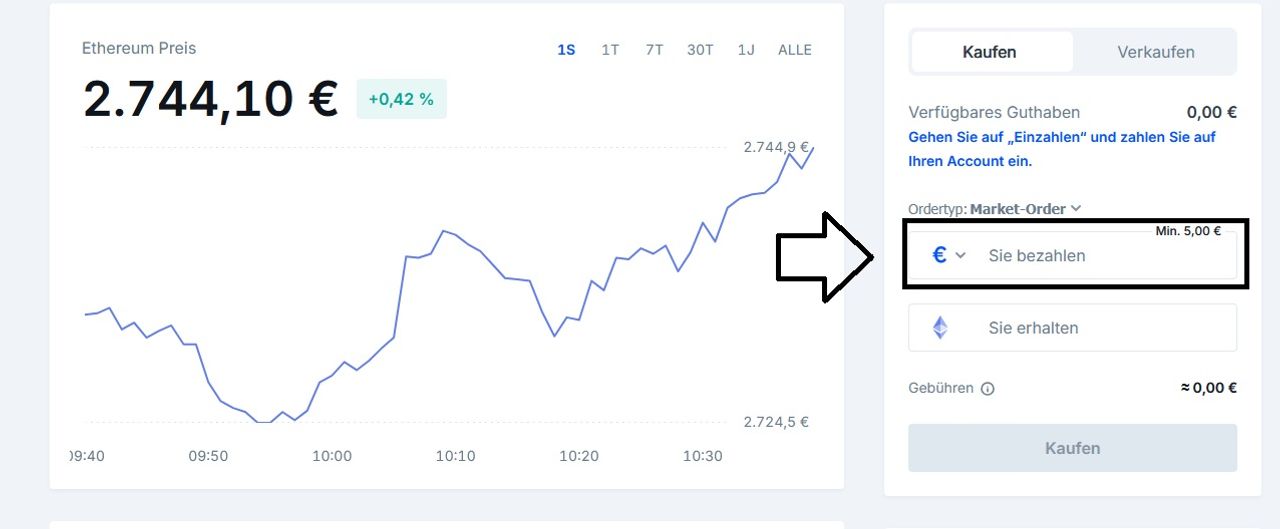 Generell empfehlen wir Einsteigern, ihre ersten Ether (ETH) über einen Krypto-Broker zu kaufen. Wer bereits Erfahrung im Krypto-Sektor sammeln konnte, kann hingegen etwas Geld sparen, indem er seine Order eigenständig über eine Krypto-Börse abwickelt.